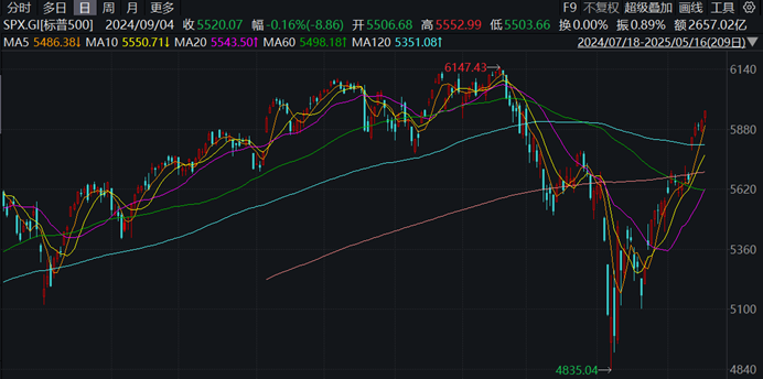【环球网财经综合报道】北京时间5月17日凌晨,美国三大股指全线收涨,道指涨0.78%报42654.74点配资网首,标普500指数涨0.7%报5958.38点,录得五连涨,纳指涨0.52%报19211.1点。本周配资网首,道指涨3.41%,标普500指数涨5.27%,纳指涨7.15%。